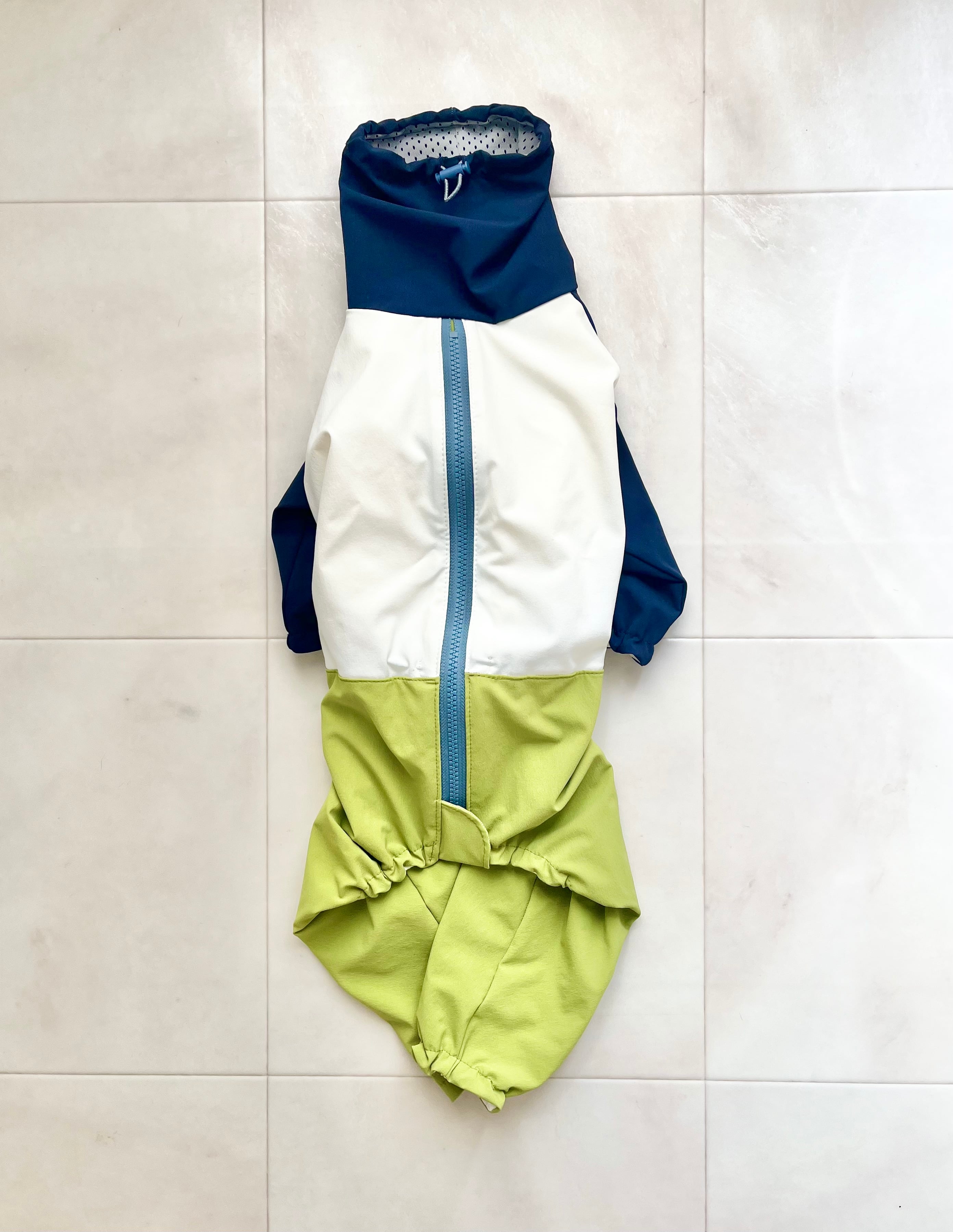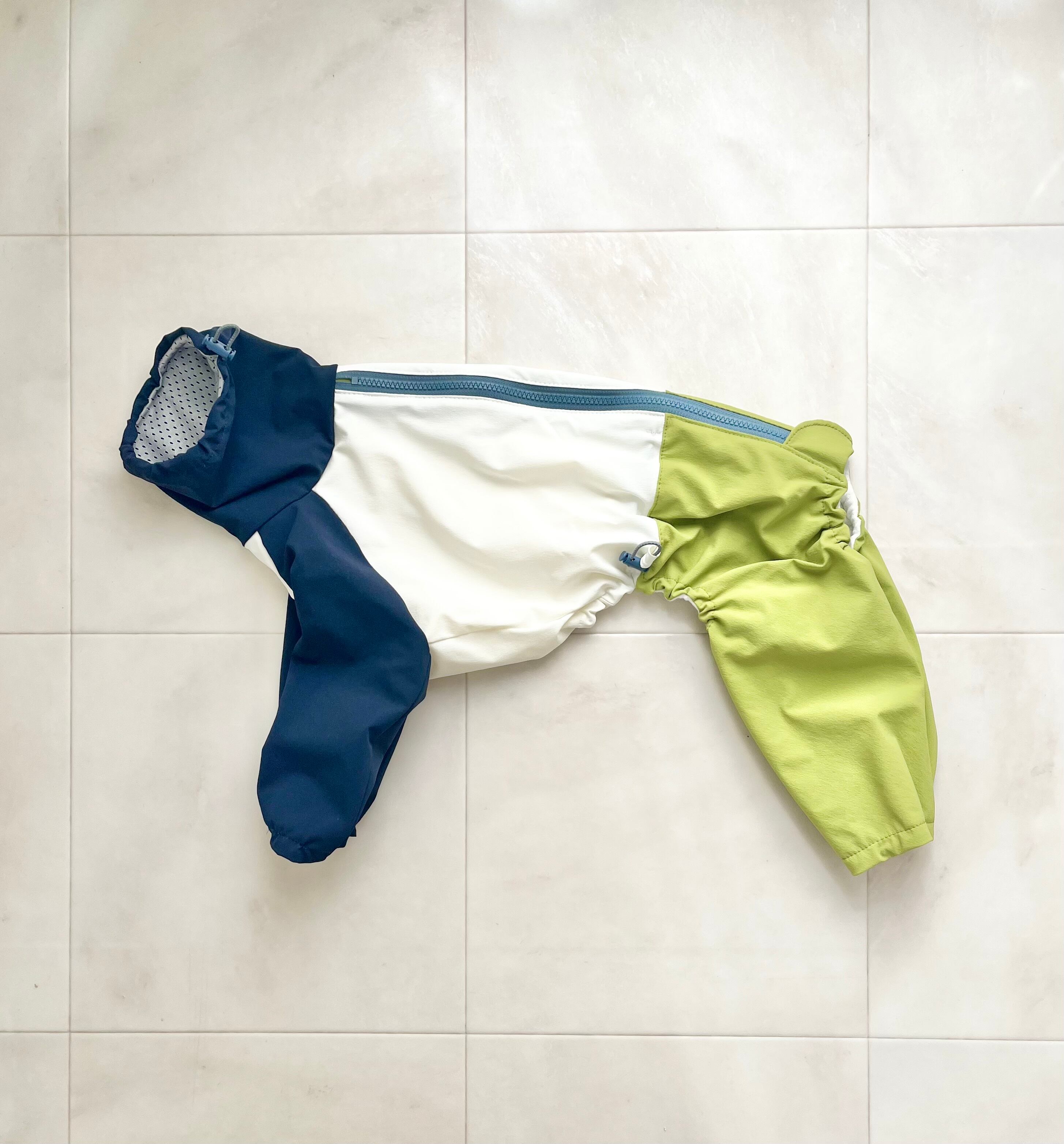 ナイロンで軽くてタテヨコに伸縮性があり、芝生もつきにくいのでドッグランにも◎