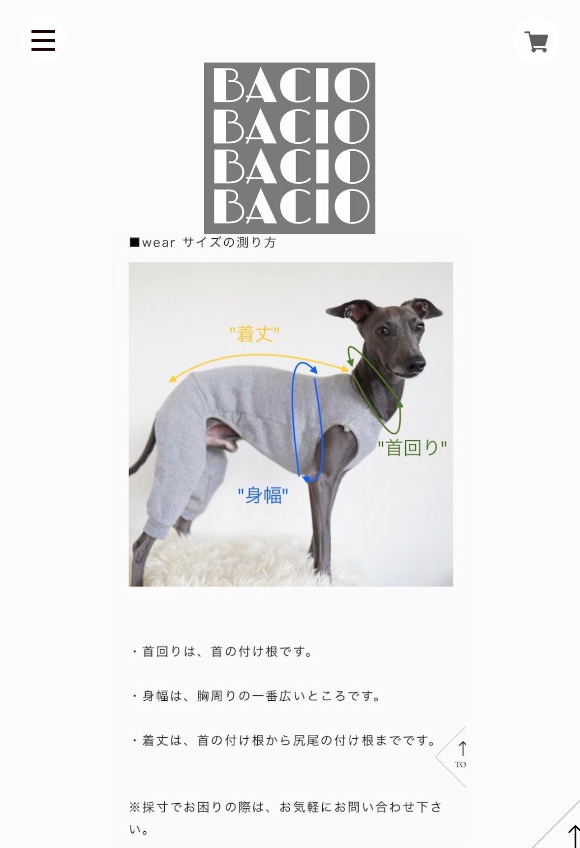 首周り25〜27cm / 胸囲47〜49cm / 着丈37〜39cm